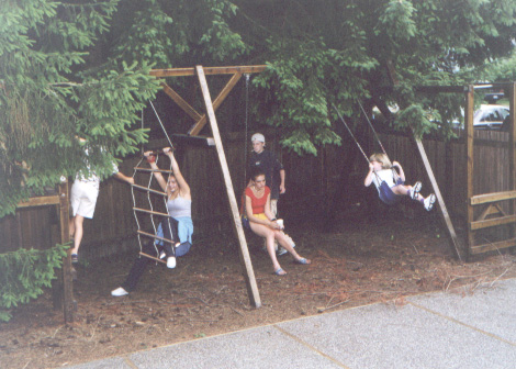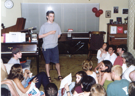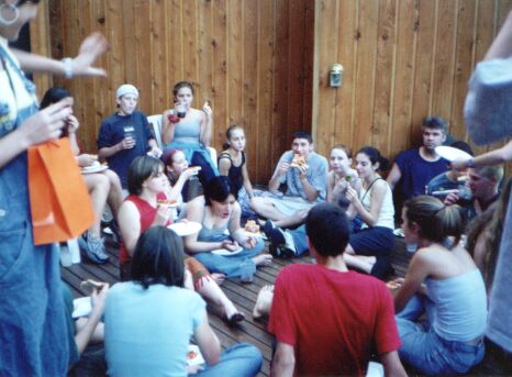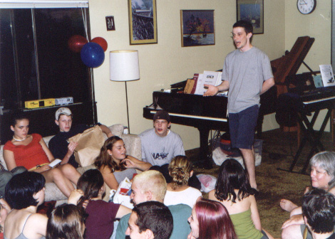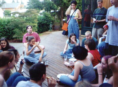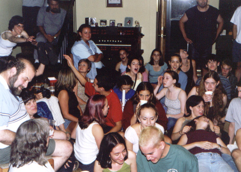 cast and crew partying at the Stewarts'...