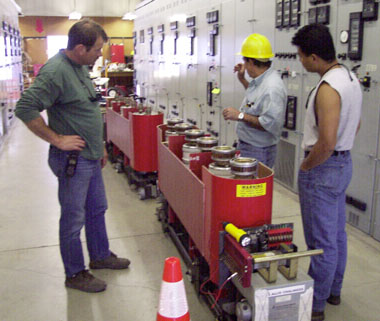 Now let's go inside! Below, you can see the engineers starting to work on the faulty transformer.