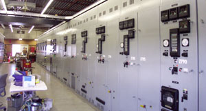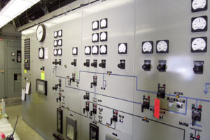 The panels are used for monitoring and controlling the electricity going out to each section of the neighborhood the substation serves.